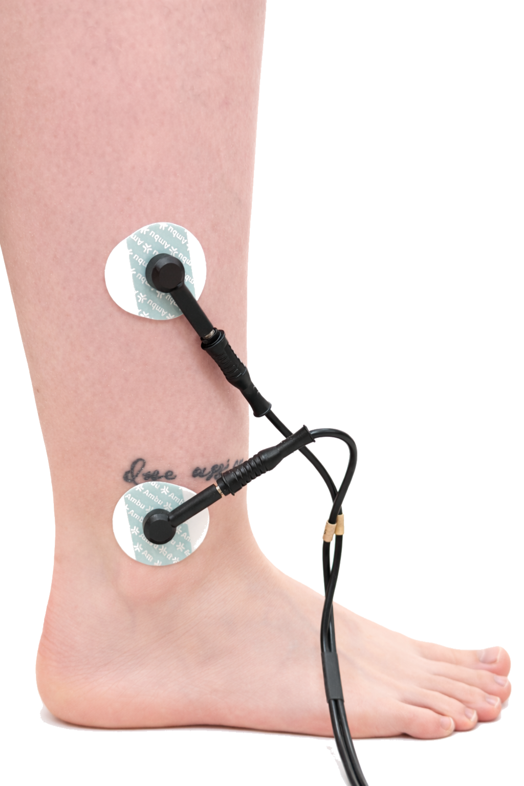 - Passage d'un courant : un courant électrique de très faible intensité est envoyé à travers le corps via des électrodes placées sur les mains et les pieds